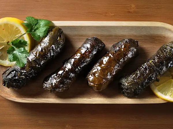 Tender vine leaves filled with herbed rice onions, lamb mince, and spices.